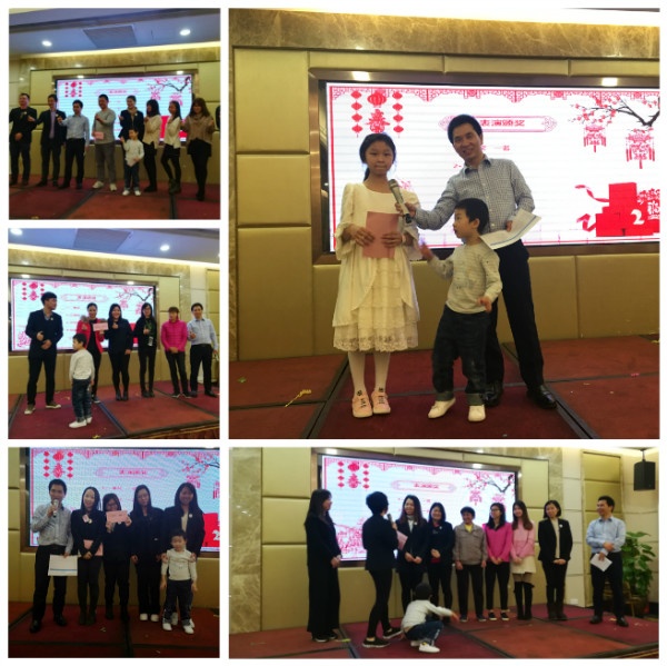 最后是頒獎(jiǎng)環(huán)節(jié),拔得頭籌的自然就是我們實(shí)至名歸的裝扮表演秀;呆萌丁雪小朋友的“狼來(lái)了”也獲得了大家的喜歡,其他節(jié)目也為當(dāng)天的晚宴增添不少歡樂(lè)的氣氛,在此,要感謝每一個(gè)表演同事的辛苦付出大家都棒棒噠!